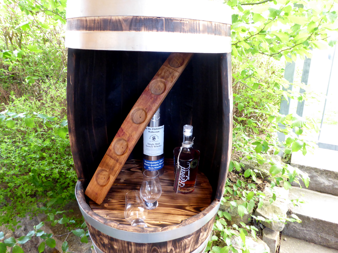 Handmade und in verschiedenen Größen gibt es die „Fässer“ in der Whisky Garage in Mellrichstadt. Sollte die gewünschte Größe nicht vorrätig sein, wird die Passende auf Kundenwunsch geordert.