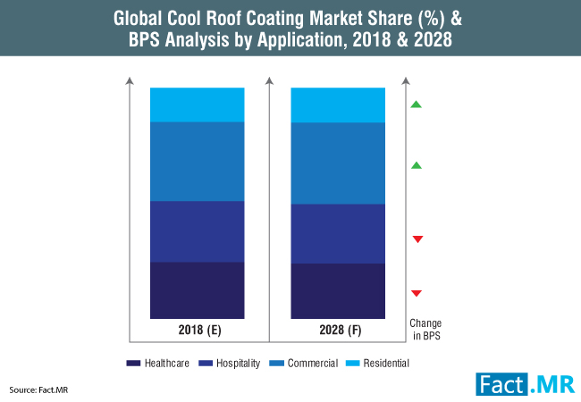 “Steep-sloped roofs are majorly observed in individual homes, particularly in countries with high snowfall and rainfall. Lower maintenance required in these in light of their structural advantage has resulted in comparatively lower penetration of cool roof coatings than in low-sloped roofs. However, the advent of advanced techniques and quick-drying colored coatings have attracted various consumers to use cool roof coatings, to curtail expenditure on energy in summers,” says a lead analyst at Fact.MR.