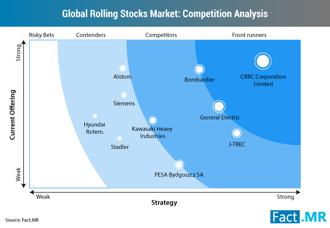 “Rolling stock landscape has witnessed a steady advancement with the introduction of technological advances in manufacturing as well as repair and maintenance space. While predictive maintenance significantly improved service space, ongoing efforts to develop rolling stocks for autonomous trains is likely to maintain a profitable growth trajectory in the coming years and generation of revenues worth over US$ 59 billion in 2019,” says a senior analyst at Fact.MR.