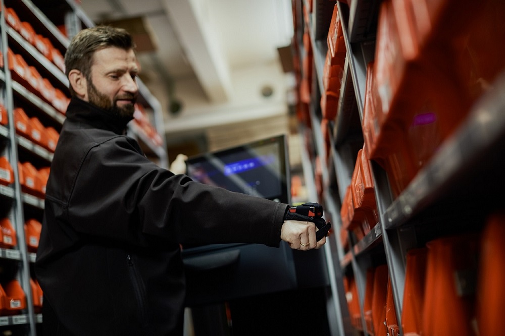 Das Wearable HyWEAR compact kann direkt in vorhandene Prozesse eingebunden werden und kommt ohne spezielle Empfangsstationen aus. Per Daumen wird der Scanvorgang anhand eines taktilen Schalters ausgelöst. Mithilfe von gut sichtbaren Status-LEDs sowie einem Vibrationsfeedback und akustischen Signalen wird das Risiko für fehlerhafte Scans minimiert und die Prozesssicherheit gesteigert. Ein weiteres Plus stellt der austauschbare Akku dar, der in Sekundenschnelle getauscht werden kann und schichtübergreifend einsatzbereit ist.