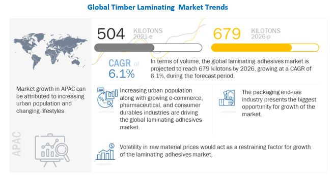 The laminating adhesives market exhibits high growth potential and is projected to reach a market size of USD 4.1 billion by 2026 from USD 2.9 billion in 2021, at a CAGR of 6.9%. APAC is the largest laminating adhesives market that is projected to register the second-highest CAGR. This high growth is due to the growing demand from the packaging, industrial, and automotive & transportation industries. There is rising awareness about the use of eco-friendly adhesives in this region.