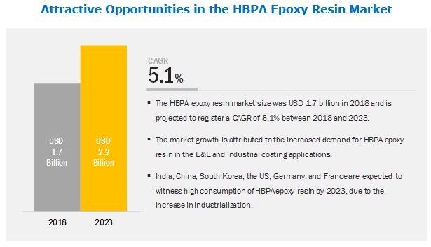The market size of HBPA epoxy resin is estimated to be USD 1.7 billion in 2018 and is projected to reach USD 2.2 billion by 2023, at a CAGR of 5.1%, between 2018 and 2023. One of the major restraints of the HBPA epoxy resin market is the volatility in raw material prices. The primary raw materials of HBPA epoxy resin are epichlorohydrin and bisphenol A. These are petroleum-based derivatives and are vulnerable to fluctuations in commodity prices.