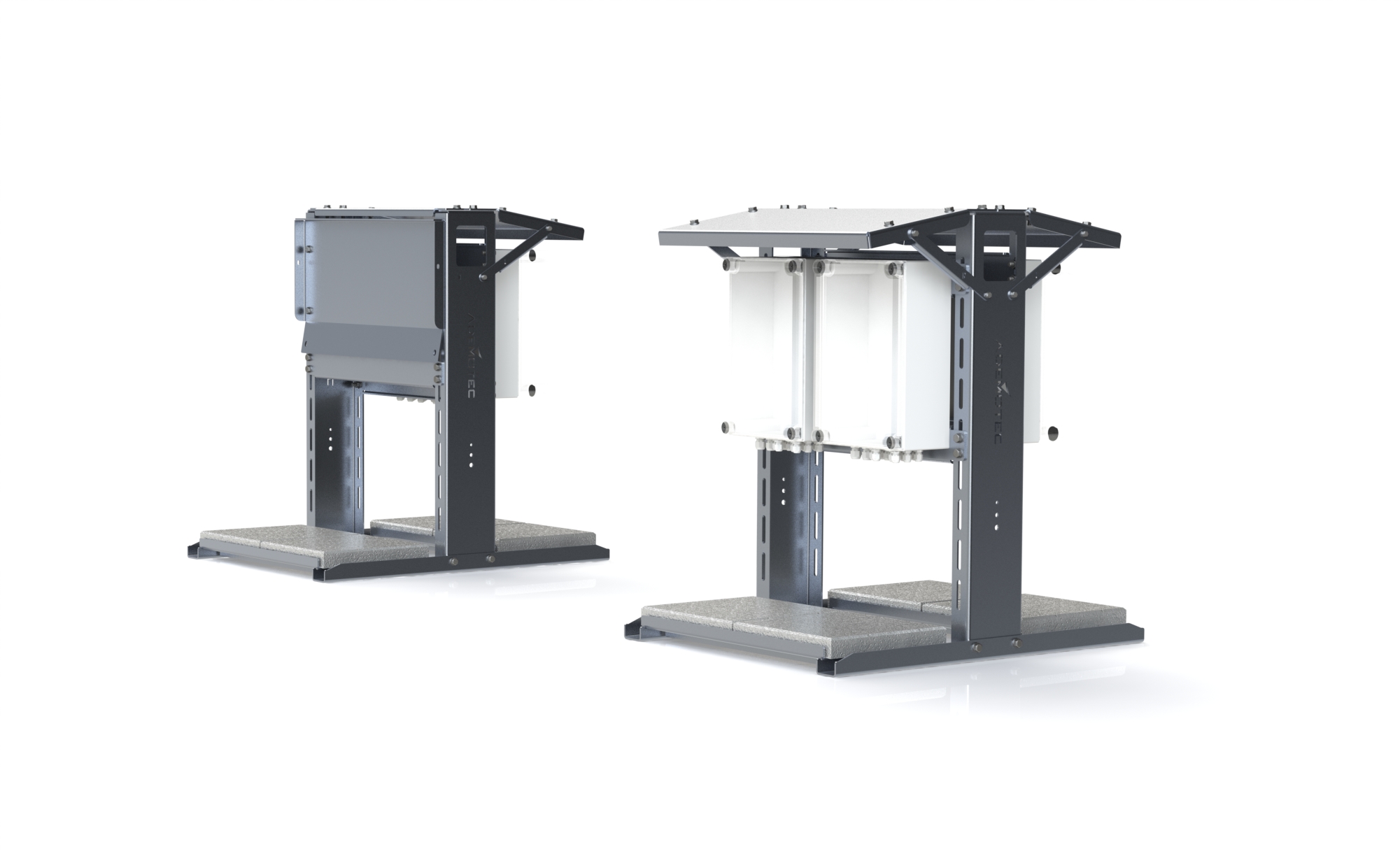 Das Gestell besteht aus leichten und zugleich stabilen Aluminium-Blechbiegeteilen, die mit Verbindungselementen aus Edelstahl für höchste Korrosions¬beständigkeit sorgen. Die optimierte, lastabhängige Ballastierung gewährleistet Standfestigkeit unter unterschiedlichen Standortbedingungen. Die eindeutigen Schrauben¬positionen und die kompakten Versandmaße vereinfachen Transport, Lagerung und Montage.