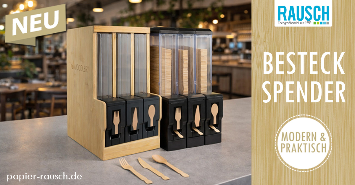 Messeneuheit: Die Erhard Rausch GmbH präsentiert zwei neue Besteckspender, die Nachhaltigkeit, Design und Funktion vereinen