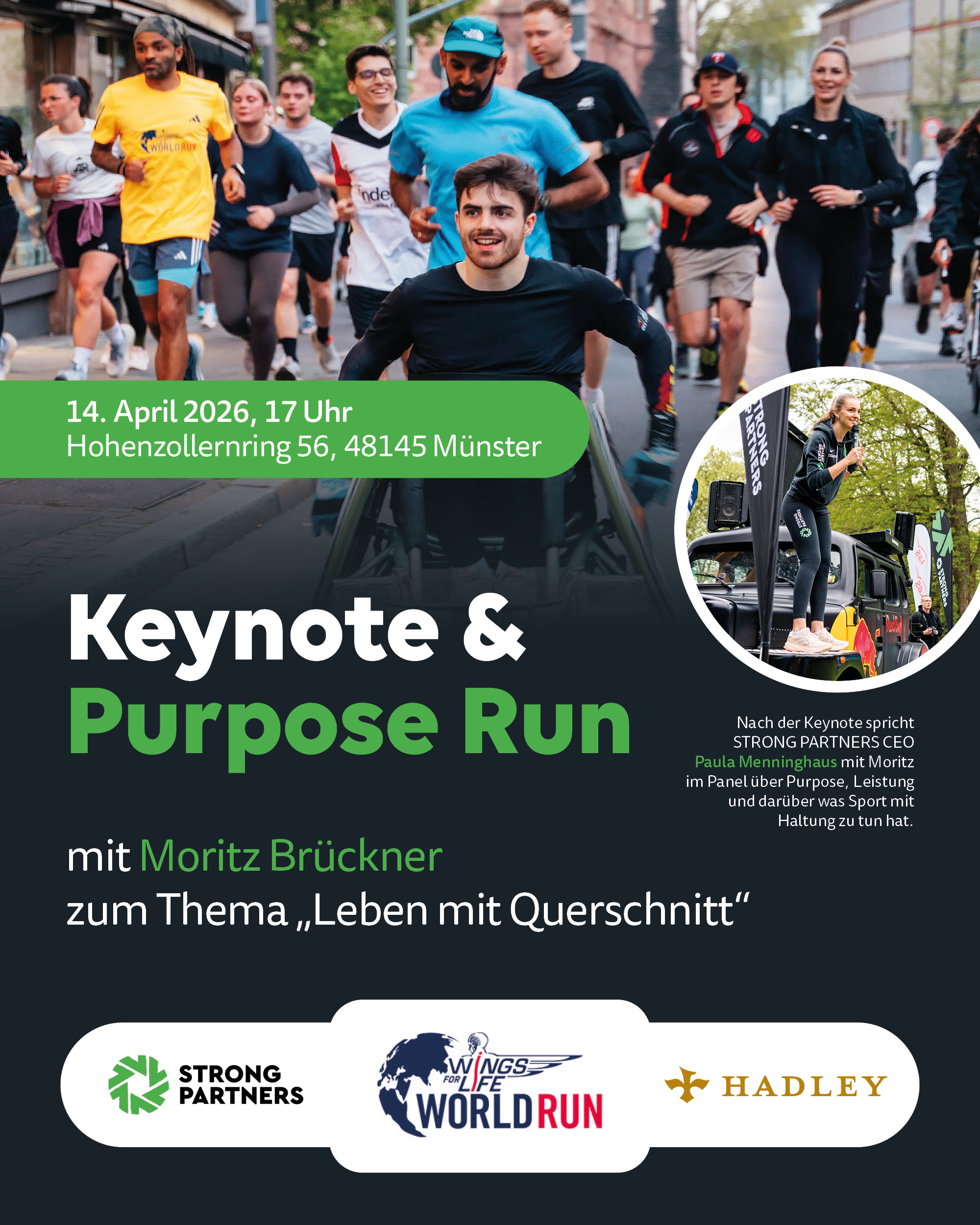 Strong Partners, HADLEY und Red Bull laden am 14. April 2026 zu einem Abend ein, der Sport, Inklusion und gesellschaftliche Haltung verbindet. Paralympionike und Rollstuhlrugby-Spieler Moritz Brückner steht im Mittelpunkt einer Veranstaltung, die mit Keynote, Panel Talk und einem gemeinsamen 5-km-Lauf ein breites Programm bietet.