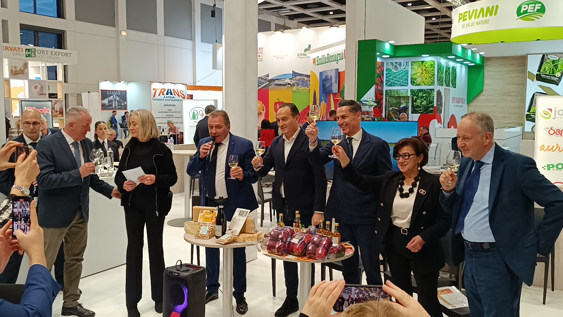 „Das Angebot an zertifizierten piemontesischen Qualitätsprodukten ist breitgefächert: von roten Äpfeln aus der Provinz Cuneo bis zu Käse, von Fleisch bis zu 60 DOC- und DOCG-Weinen,“ betont Alberto Cirio, Präsident der Region Piemonte, bei der feierlichen Eröffnung des Piemonte-Messestands am Mittwoch, dem 5. Februar 2025. „Unser Ziel ist es, diese Produkte durch verstärkte Marketinginitiativen international bekannter.“ Öffentlichkeitswirksame Unterstützung dabei bekommt die Region auch durch den Italienischen Minister für Landwirtschaft, Lebensmittel- und Forstwirtschaft, Francesco Lollobrigida, der zur Eröffnung des Messestandes angereist war. Zugegen waren weitere Player des für die Region so wichtigen Agrar- und Agrarhandelssektors – der Regionalregierungsrat für Handel, Landwirtschaft und Lebensmittel, Jagd und Fischerei sowie Naturparks der Region Piemonte, Paolo Bongioanni, des weiteren Davide Gilardino, Präsident der Provinz Vercelli, dem europaweit wichtigsten Zentrum für den Handel mit Reis, die Präsidentin der ENTE NAZIONALE RISI, dem nationalen Verband der Reis-Wirtschaft, Natalia Bobba, sowie Domenico Sacchetto, Präsident des Handelskettenverbandes Aop Piemonte.
