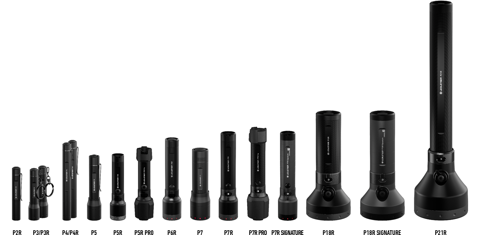 P18R & P21R (ab 289,00 €): Die Leistungsträger der Serie – Taschenlampen und Suchscheinwerfer gemacht für große Räume und anspruchsvolle Einsätze.