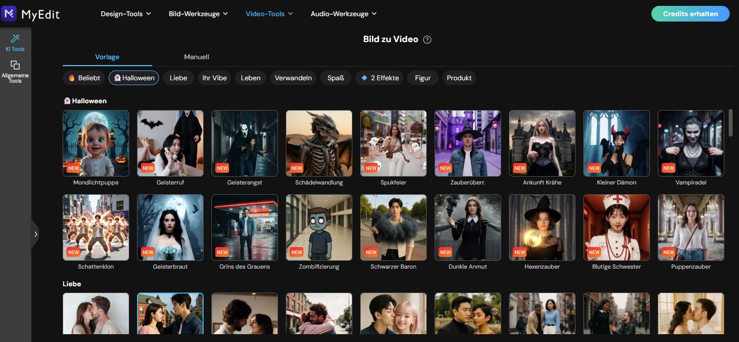 Über eine Auswahl markanter Halloween-Themen wie „Geisterangst“, „Vampiradel“, „Schädelwandlung“ oder „Dunkle Anmut“ wird ein beliebiges Foto automatisch animiert – inklusive Bewegung, Stil und Stimmung. User laden ein Foto hoch, wählen eine Vorlage aus, legen Seitenverhältnis und Länge fest, und die KI setzt passende Effekte, Übergänge und Bewegungslogik ein, um aus einer statischen Aufnahme einen kurzen Clip zu erzeugen.